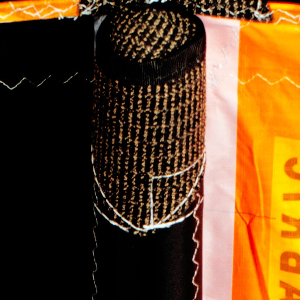 Our bold graphics are designed with CNC laser cut panels made with canopy fabric firstly glued and then triplestitched together. This way we can avoid massive screen printining on the kite, reducing it’s deteriorating effect and making each graphic panel effectively a reinforcement on the kite body it’self.