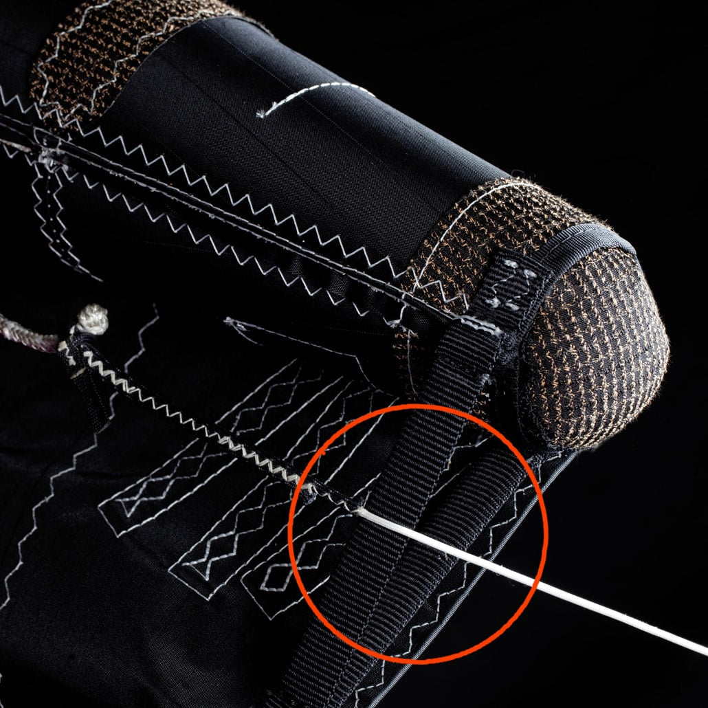 Every panel of any inflatable structure, from the struts to the leading edge, is built with a special heavy duty stitching system. The stitching areas are internally reinforced with a strip of adhesive dacron (Insignia), creating a solid base for durability. Kevlar is then wrapped around every exposed LE Seam to provide further protection.