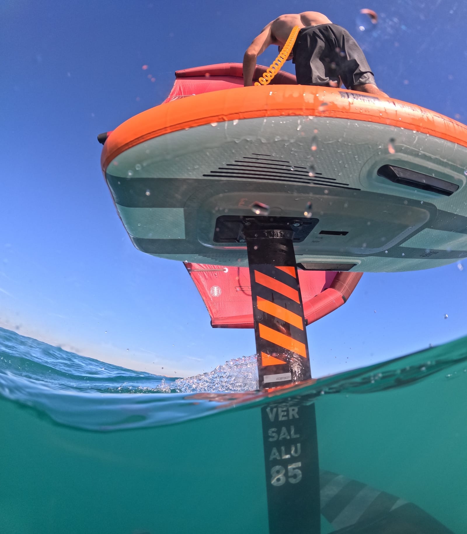 The new Air Beluga is the best board for progressing in complete safety and comfort. We have thought of new sizes and accessories to ease the learning process for novice riders and cut the learning time by half. We are introducing new big sizes of 235 and 200 volume with the addition of removable lateral side fins. Such a great volume guarantees a comfortable platform to have the stability you need to forget about the board and just focus on learning how to use the foil. The lateral fins allow you to not drift downwind which is the real hassle when you approach wingfoiling for the first time.