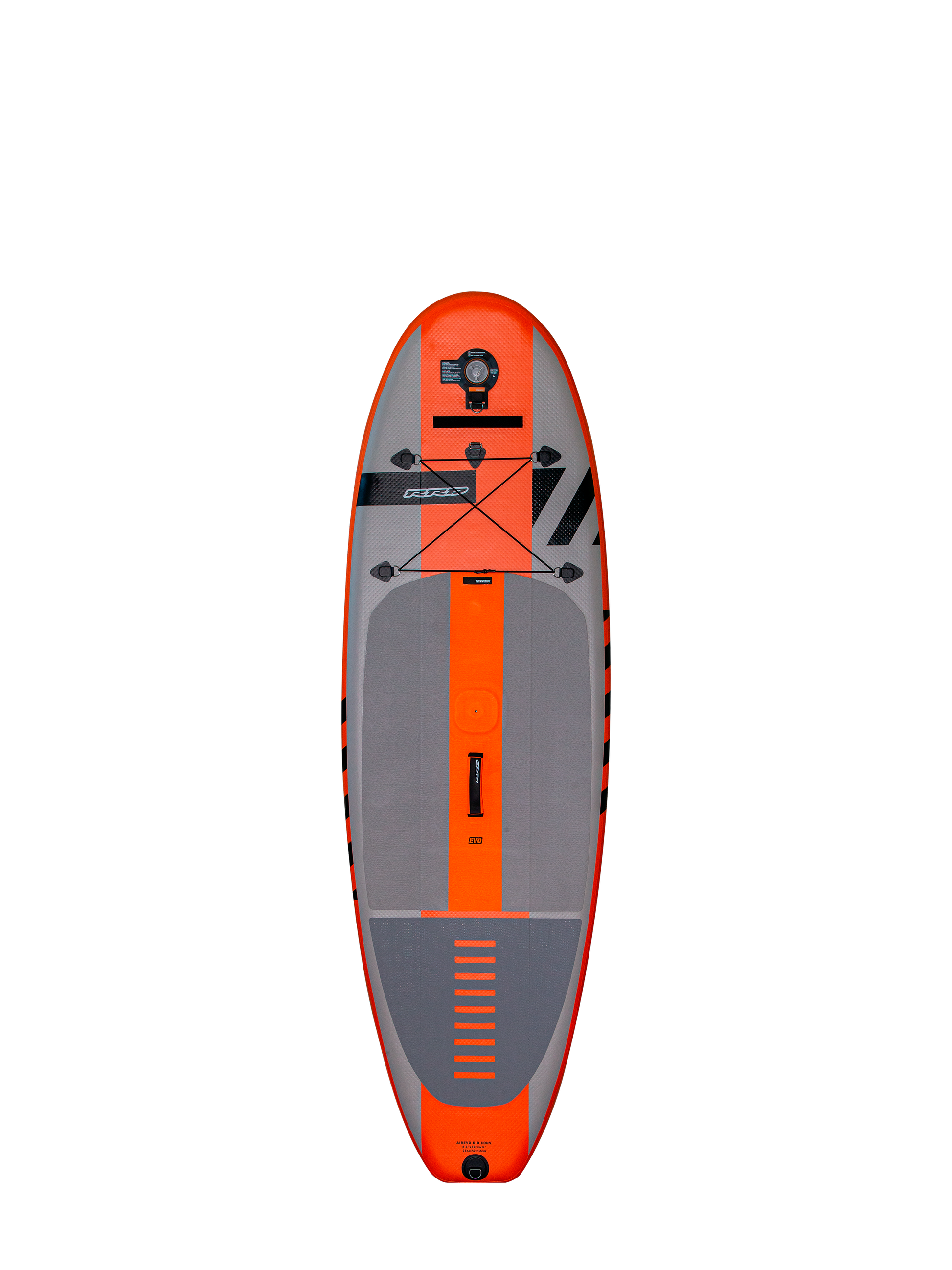 The EVO CONVERTIBLE line can become the perfect companion of your first windsurfing days. You can SUP this board as well as WINDSURF it. Light, stable, easy to carry and to be stored back in its carry bag. Built only with the strongest and longer lasting and ultra light DROPSTITCH fabrics available today, the EVO CONVERTIBLE boards are the perfect choice for you and your family to start approaching Windsurfing and Sup with one board for all! All the Evo Conv models are equipped with one 35 cm wide “click-on” center fin system to stay upwind and one standard US box fin on the tail of the board. The safety device chamber also offers extra safety floatation for any emergencies. The split crocodile EVA pad make keeps the weight of board down, and the new diamond low-profile PVC tail pad guarantees best grip in case of radical change of direction.